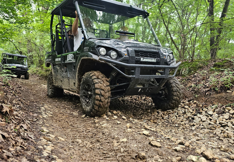 30-minute Guided UTV tours on six-passenger Kawasaki Mule Pro-FXT UTVs through hills, creek beds, limestone formations, and wooded paths around Aerie's Resort. Tours run daily from 11 a.m. to 5 p.m., and you can contact them at (618) 786-8439 for booking or more information.